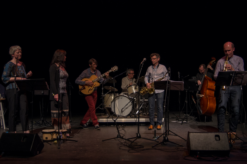 Cette formation se compose aussi de deux chanteuses (Agnès et Anita), d’un batteur (Marc), de deux saxophonistes (Dominique et Arnaud) et d’un contrebassiste (Stéphane) !